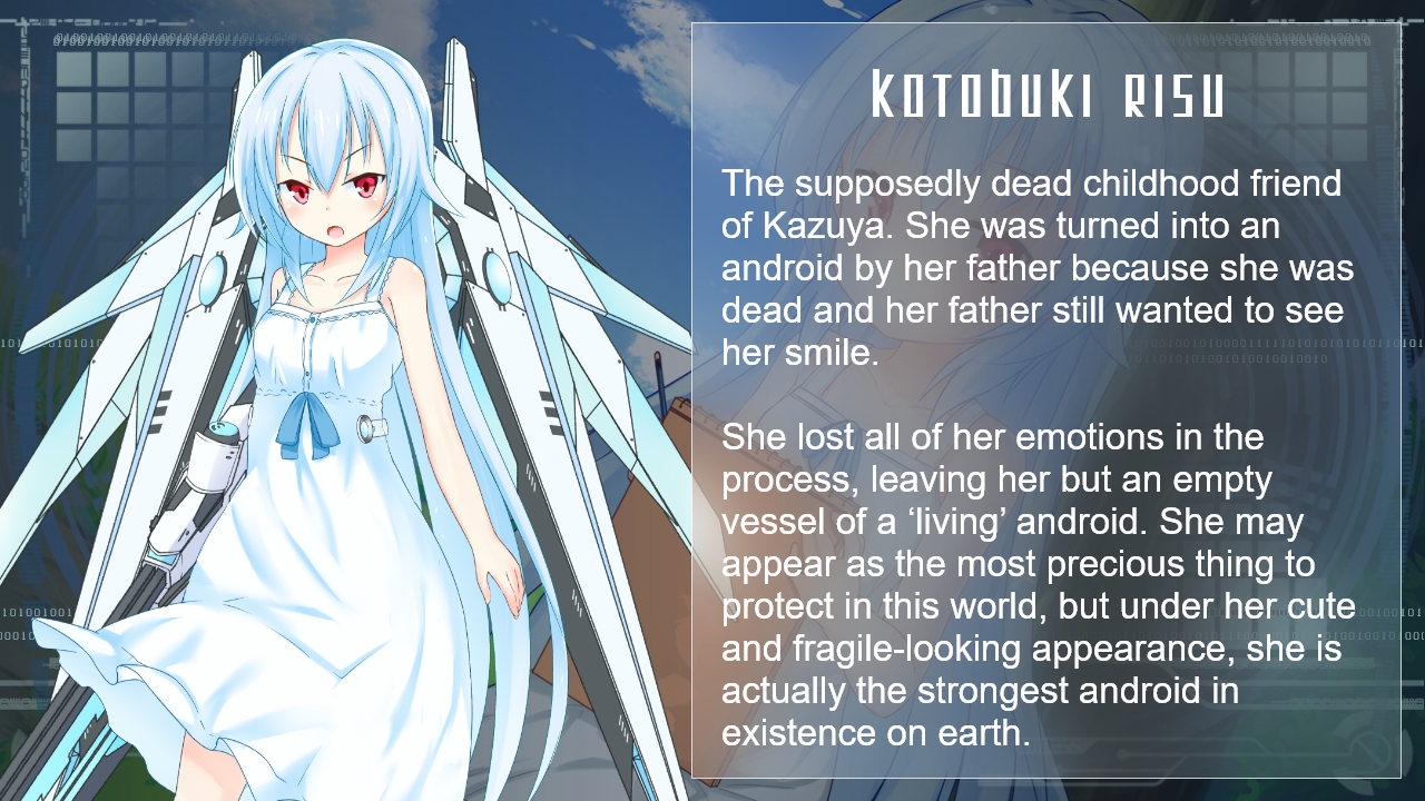 But, things turn upside down as Kazuya sees his supposedly dead childhood friend. His hand suddenly shivers and his face turns white. All the memories about his childhood friend, accompanied by the guilt, sweep over him like a torrent in a deep sea. Kazuya then approaches the girl and abruptly asks her about everything that he knows about her. Much to Kazuya’s surprise, the girl doesn’t know him. She only introduces herself as Kotobuki Risu. Her voice, her crimson-red eyes, her gesture, and everything else is just the same. Kazuya is positive that she is Risu herself. But why doesn’t she remember him?